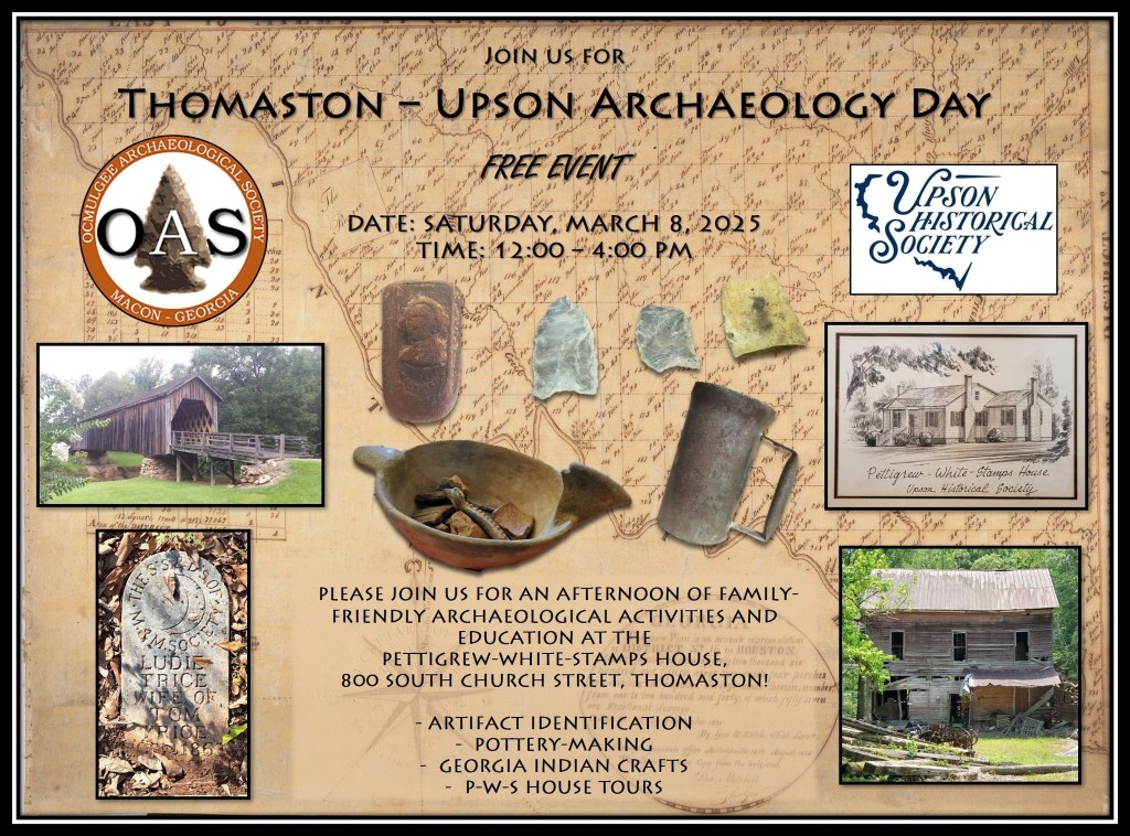 In conjunction with the Thomaston-Upson County Bicentennial Committee and Upson Historical Society, the Ocmulgee Archaeological Society will hold a community archaeology day on March 8.